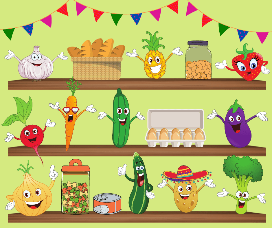 V špajze majú každý druhý piatok hudobnú šou a tanečný sviatok. Cesnak má rád svižné kroky zumby, cibuľa sa vlní v rytme rumby. Rebarbora už sa zvŕta s kelom, očarí ho svojim štíhlym telom. Jahoda miluje hriešne tango, za partnera vybrala si mango. Pri tanci sa celá červená, všetci vedia, čo to znamená. Inštruktorka tanca cuketa trénovala valčík od leta. V čipkovaných šatách odetá nôžkami tak ladne prepletá. A keď spustí miestna dychovka, od radosti zvýskne reďkovka. Pridajú sa nežné marhuľky a už krepčia v rytme mazurky. Potom nastal rozruch - tekvica dala chrenu božtek na líca. A jej tajný ctiteľ ananás z kúta gánil na chren aj na nás. O mrkve to možno neviete, je sólistkou v štátnom balete. Napraví si závoj sukničky a zľahka vyskočí na špičky. Zemiak ráta kroky - čačača, uhorku to trochu vytáča. Baklažán má radšej clivé blues, pór veselý hiphop, tiež to skús!