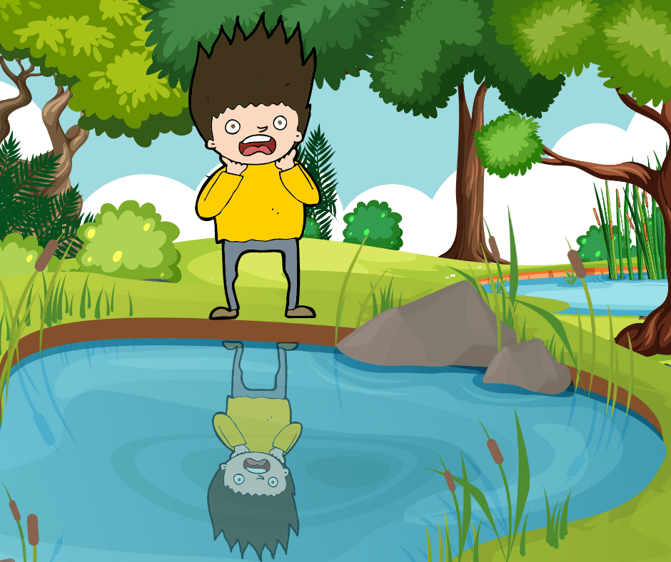 V hustom lese studnička, v nej sa jagá vodička. V jedno ráno náhodou zbadám čosi pod vodou. Hladina sa sčerila, zuby na mňa cerila. Zľakol som sa sprvoti toho čuda oproti. No vzápätí som sa smial - vlastnú tvár som nespoznal!